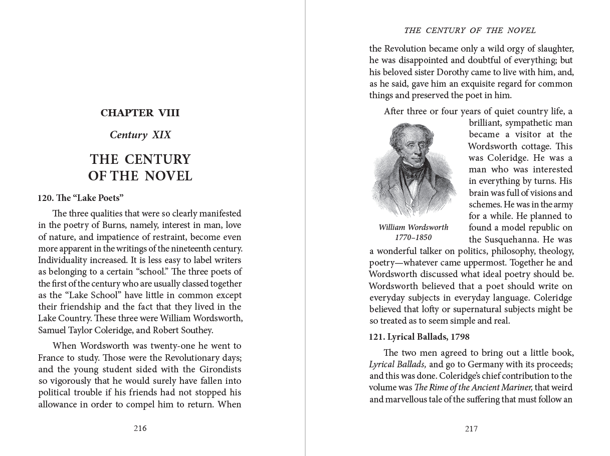 Description: A stellar history of English literature from the 5th century to the 19th, introducing the chief writers of each era and the works they are famous for, as well as the relationships that formed among them. The author is a master at capturing the essence of each historical era, showing how that affected the writing that emerged. Two thirds of the text is devoted to England's literature with the remaining third for America's literature. The organizing principle for England's literature is the century, with the century of Chaucer, the century of Shakespeare, the century of the novel, and so on. For America's literature the writers are introduced in groups, such as the transcendentalists, anti-slavery writers, and orators. Illustrations for many of the writers along with numerous short excerpts from their work enliven the text. Recommended for use in conjunction with historical studies to provide a fuller picture of the cultural currents. Includes extensive reference list for both English and American literature for those who want to delve deeper.
