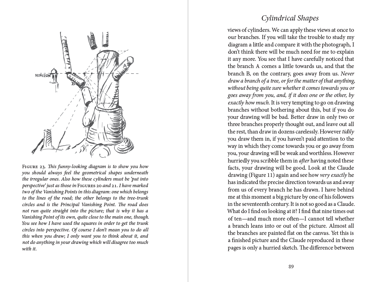 Description: Conversational guide to principles of drawing written in a thoroughly engaging way. With lots of suggestions of what to do-draw from nature, make lots of drawings, pay attention to balance-and a few to avoid-do not copy, do not erase, do not hesitate to start over, the author starts budding artists on the path to learning to draw. Through examination of a number of drawings by old masters as well as by the author himself, the reader comes to appreciate the importance of balance, composition, and patterns. Terms such as Perspective, Horizon Line, and Vanishing Point are introduced as well as ways of making drawings look 'solid.' Above all, the reader will come away with the understanding that learning to draw is learning to see, together with a framework for improving his own drawing and for appreciating that of others. A book to read slowly and return to again and again.
