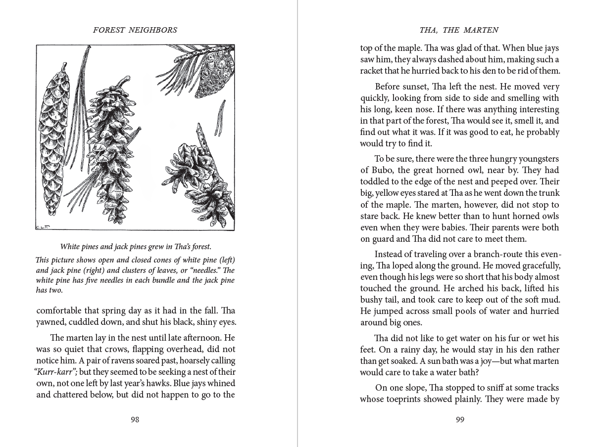 Description: Immerse yourself in the north woods by becoming acquainted with two dozen of its residents, as you follow each in turn through a typical year. Along the way, you will encounter some familiar mammals such as chipmunk, beaver, and white-tailed deer, but also some harder to spot ones such as moose, lynx, and marten. Among the birds you will come to know chickadees, ruffed grouse, Canada jays, and great-horned owls that are year-round residents of the forest, as well as others that migrate every spring and fall, among them the loon and merganser that inhabit the ponds, and vireos, warblers, and thrushes that flit among the trees. Eighteen chapters of stories well-illustrated and delightfully told that bring the forest to life for readers of all ages.