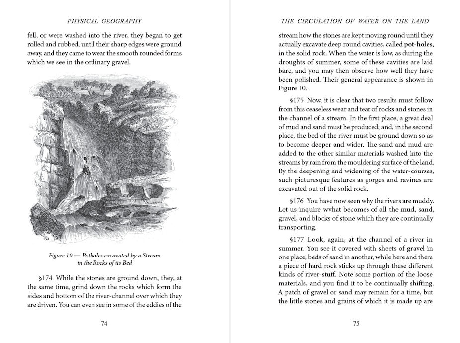 Description: Guides the reader in gaining a fuller appreciation of the natural landscape by posing questions and suggesting observations they can make for themselves. Includes such topics as how to determine the shape of the earth, where rain and snow come from, the various ways that water circulates over land, and why the sea is salt. Lays the foundation for a lifetime of ongoing interest in and observation of ever-changing geographical features, with a greater understanding of how it came to be the way it is today.