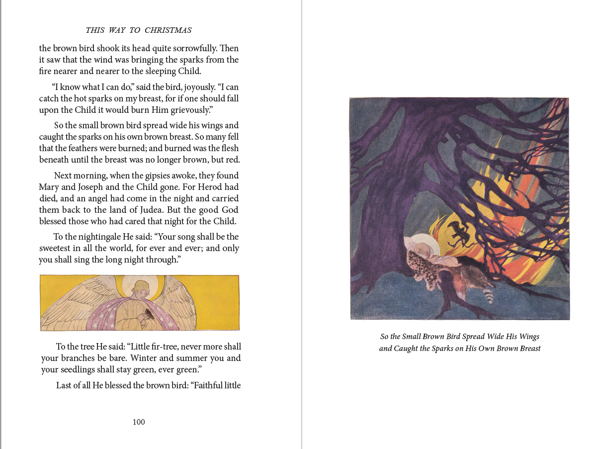 Description: Stranded in upstate New York with just seven days to go until Christmas, a lonesome boy comes up with an ingenious way to bring Christmas to the equally lonesome inhabitants of his small mountain community, all of whom were spending the winter far from home. Visiting each in turn, David befriends his neighbors and delights in hearing the Christmas stories they share with him, stories they heard in their homelands long ago. A final celebration brings all the neighbors of different nationalities together, forging relationships that will outlast the holiday season and sending a message of hope to a war-torn world. Appealing color illustrations by Maginel Wright Barney accompany the text.